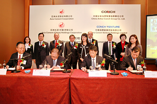 2014年1月7日上午,中國(guó)安徽海螺集團(tuán)公司、中國(guó)海螺創(chuàng)業(yè)控股有限公司分別與亞洲水泥股份有限公司、亞洲水泥(中國(guó))控股公司在香港萬(wàn)豪酒店簽署戰(zhàn)略合作協(xié)議。未來(lái)各方將加強(qiáng)在節(jié)能環(huán)保、國(guó)際化發(fā)展、新型建材及水泥生產(chǎn)技術(shù)、運(yùn)營(yíng)管理、物流運(yùn)輸、房地產(chǎn)開(kāi)發(fā)等領(lǐng)域的廣泛合作,共創(chuàng)互贏(yíng)局面。