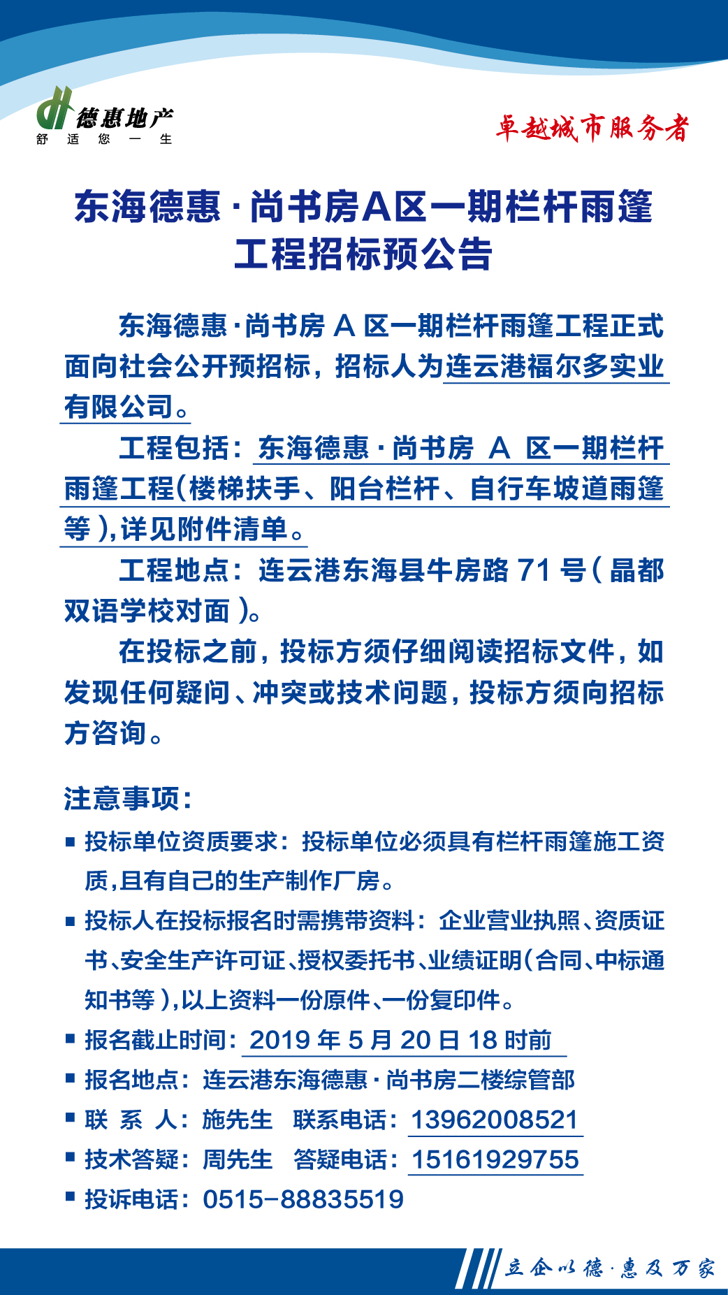 東海德惠·尚書房A區(qū)一期欄桿雨蓬工程招標(biāo)預(yù)公告