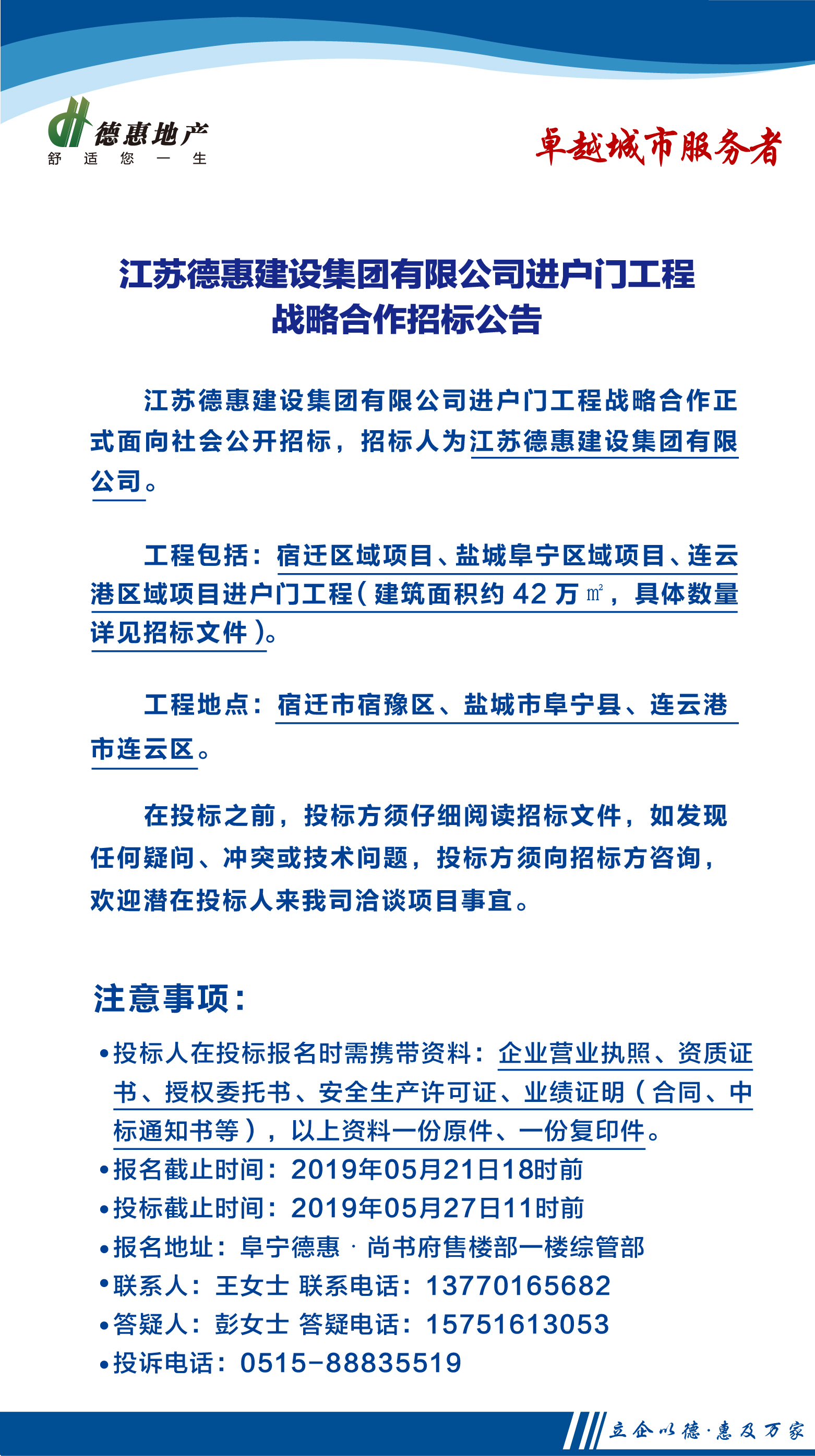 江蘇德惠建設(shè)集團有限公司進戶門工程戰(zhàn)略合作招標公告