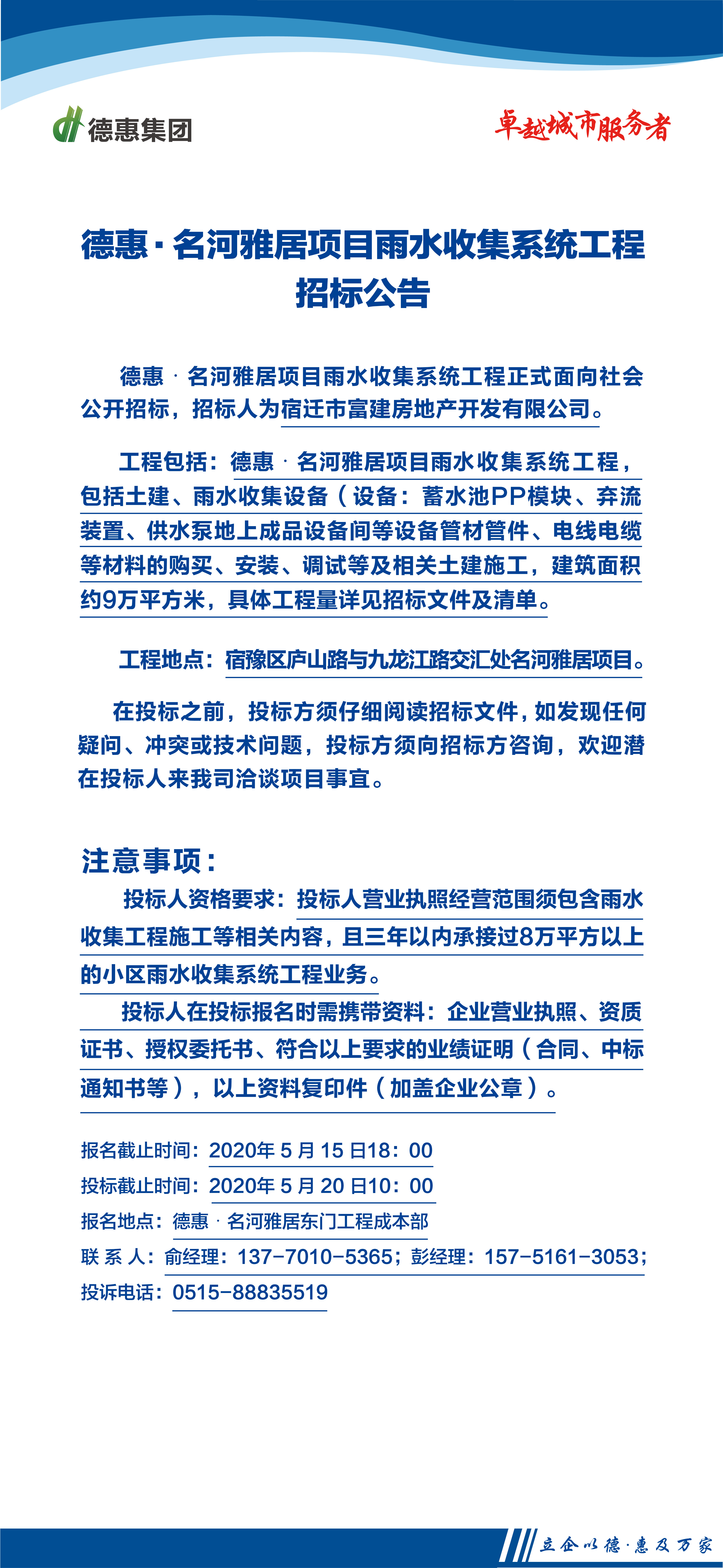 德惠·名河雅居雨水收集系統(tǒng)工程招標公告