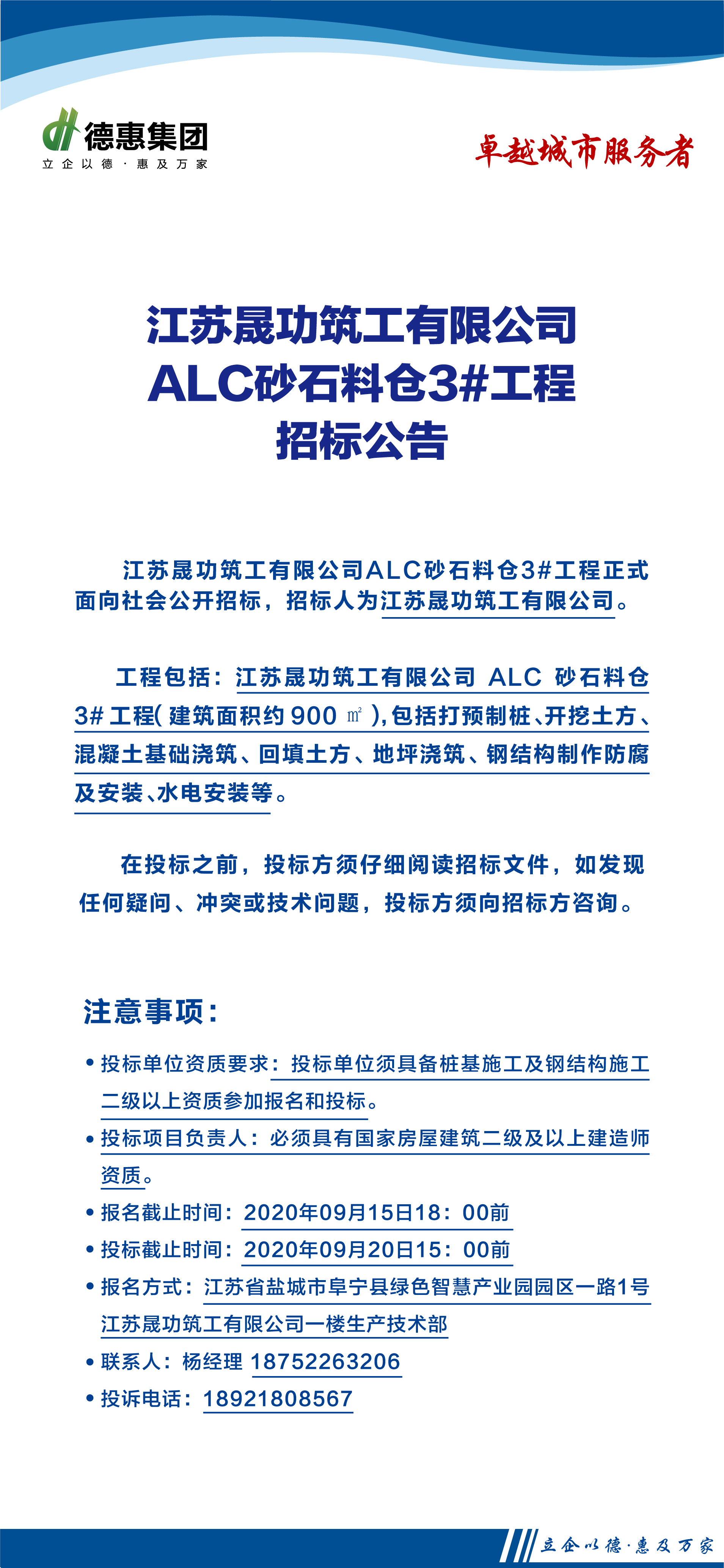 江蘇晟功筑工有限公司ALC砂石料倉(cāng)3#工程招標(biāo)公告