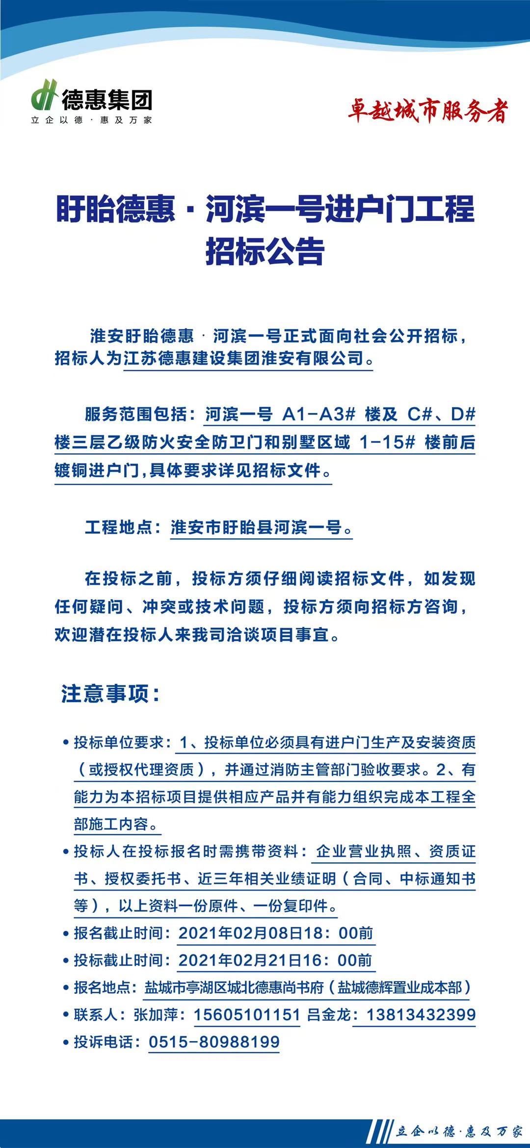 盱眙德惠·河濱一號(hào)進(jìn)戶門工程招標(biāo)公告