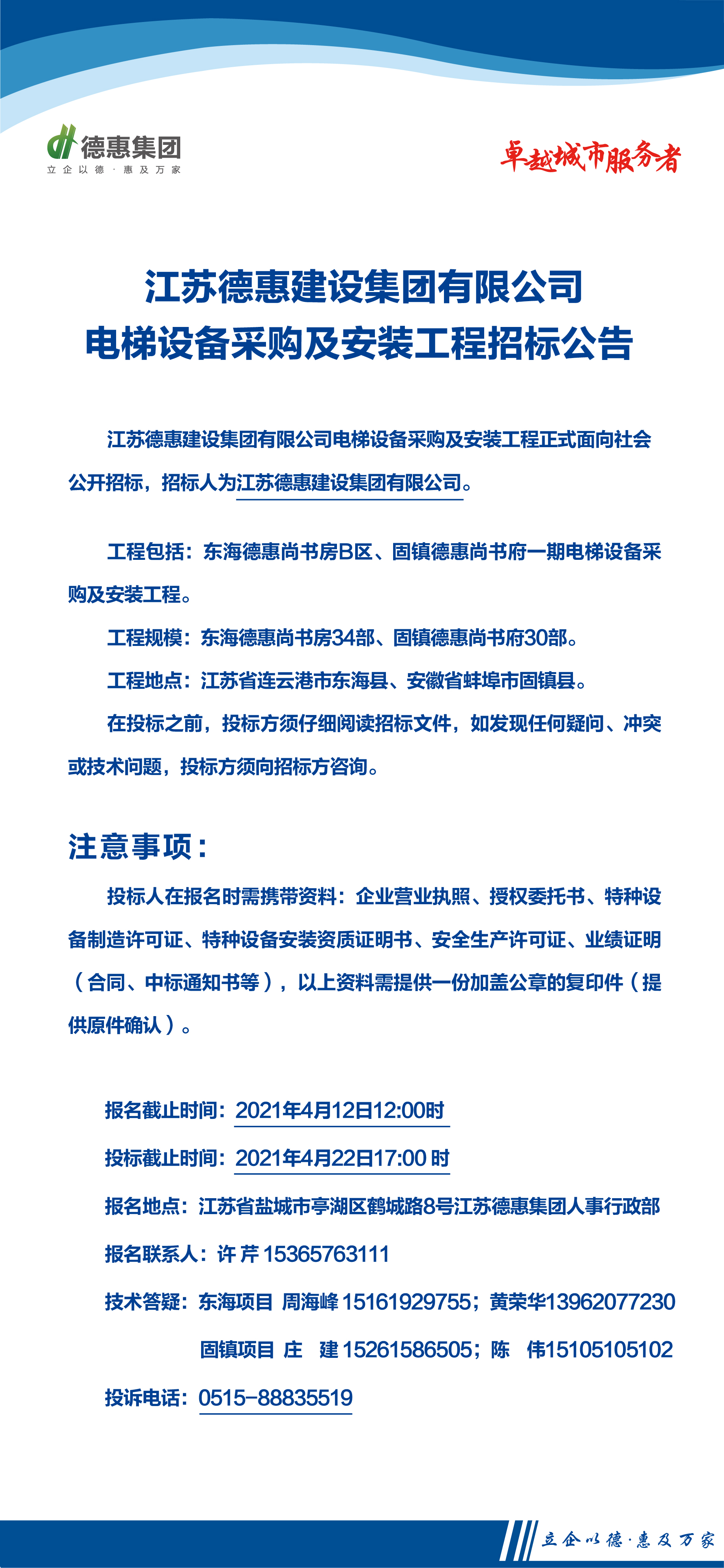 江蘇德惠建設(shè)集團(tuán)有限公司電梯采購及安裝工程招標(biāo)公告