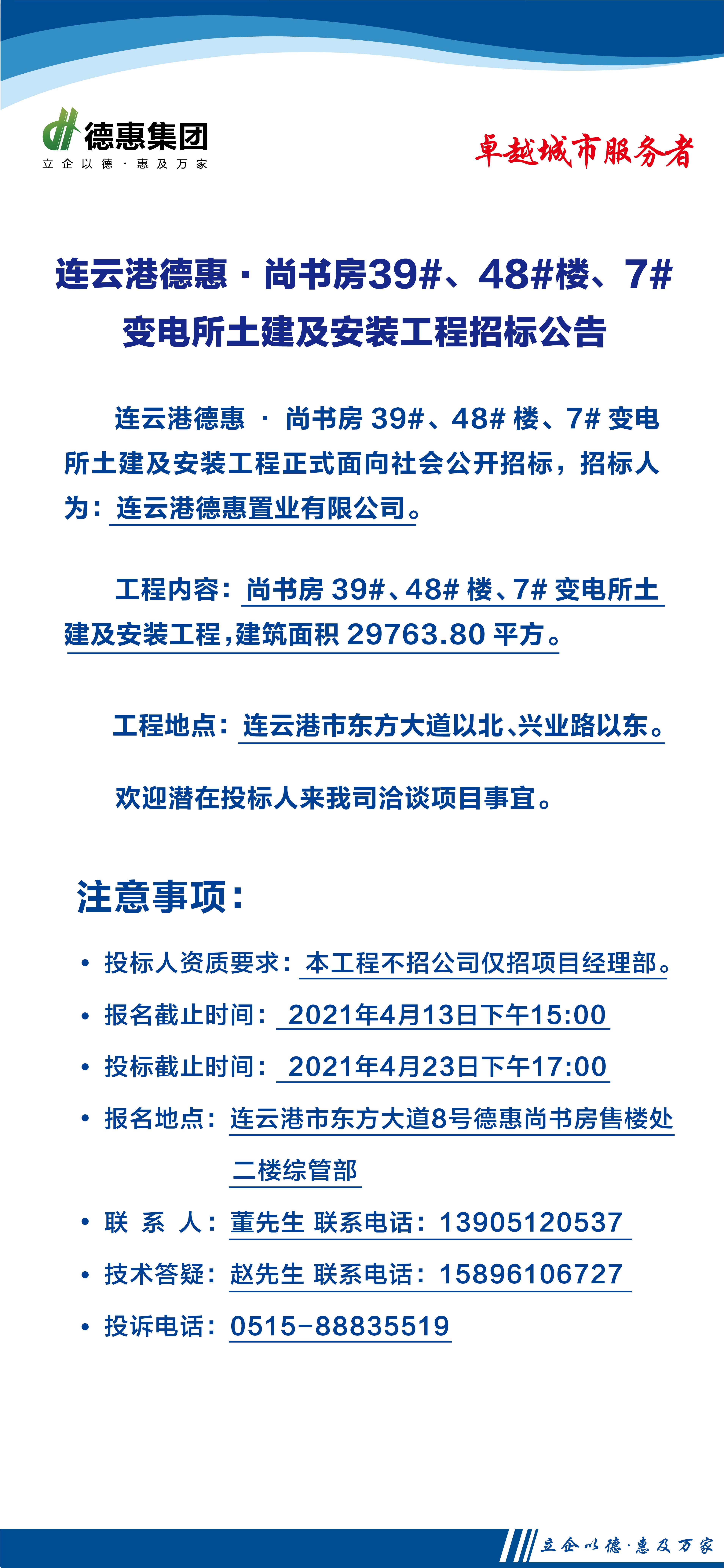 連云港德惠·尚書房39#、48#樓、7#配電房土建及安裝工程