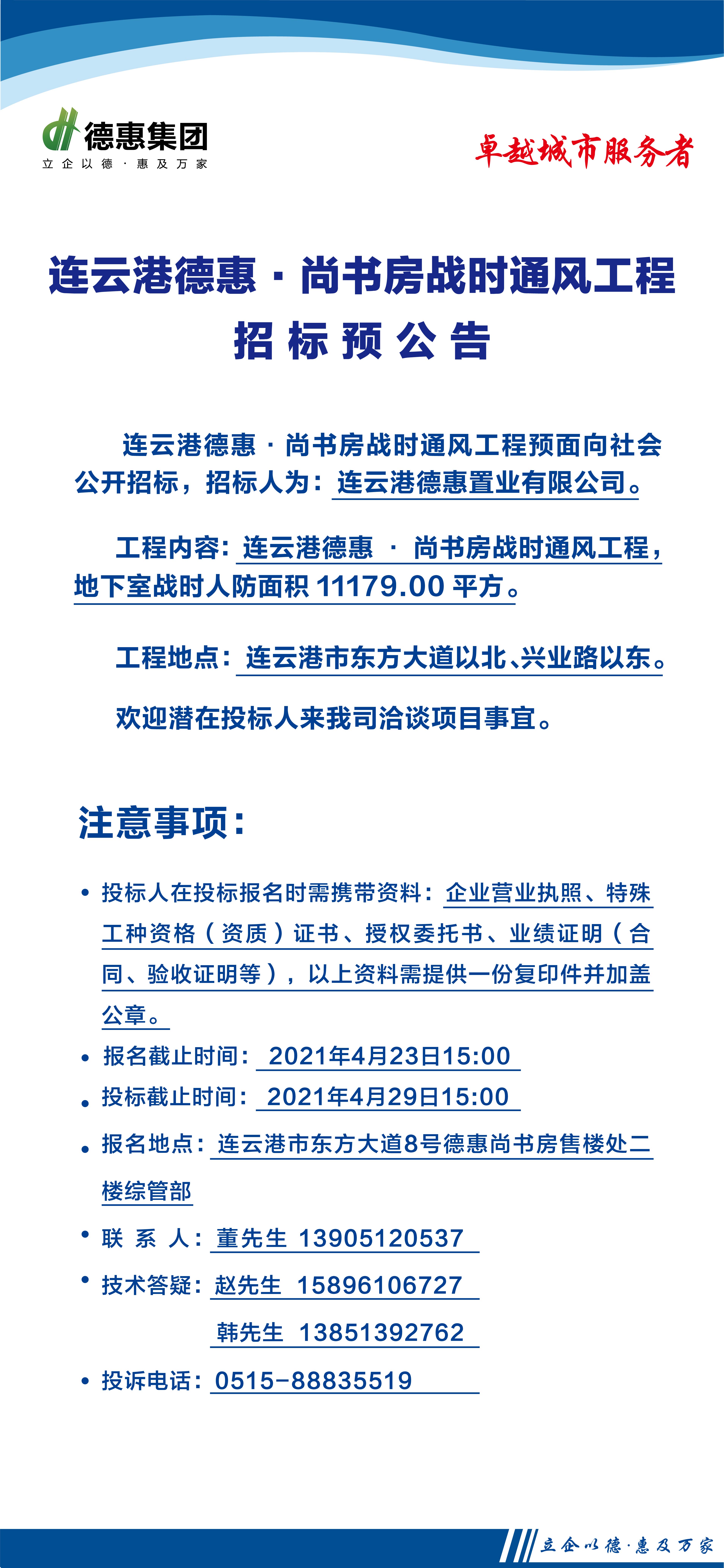 連云港德惠·尚書房戰(zhàn)時通風工程招標預公告