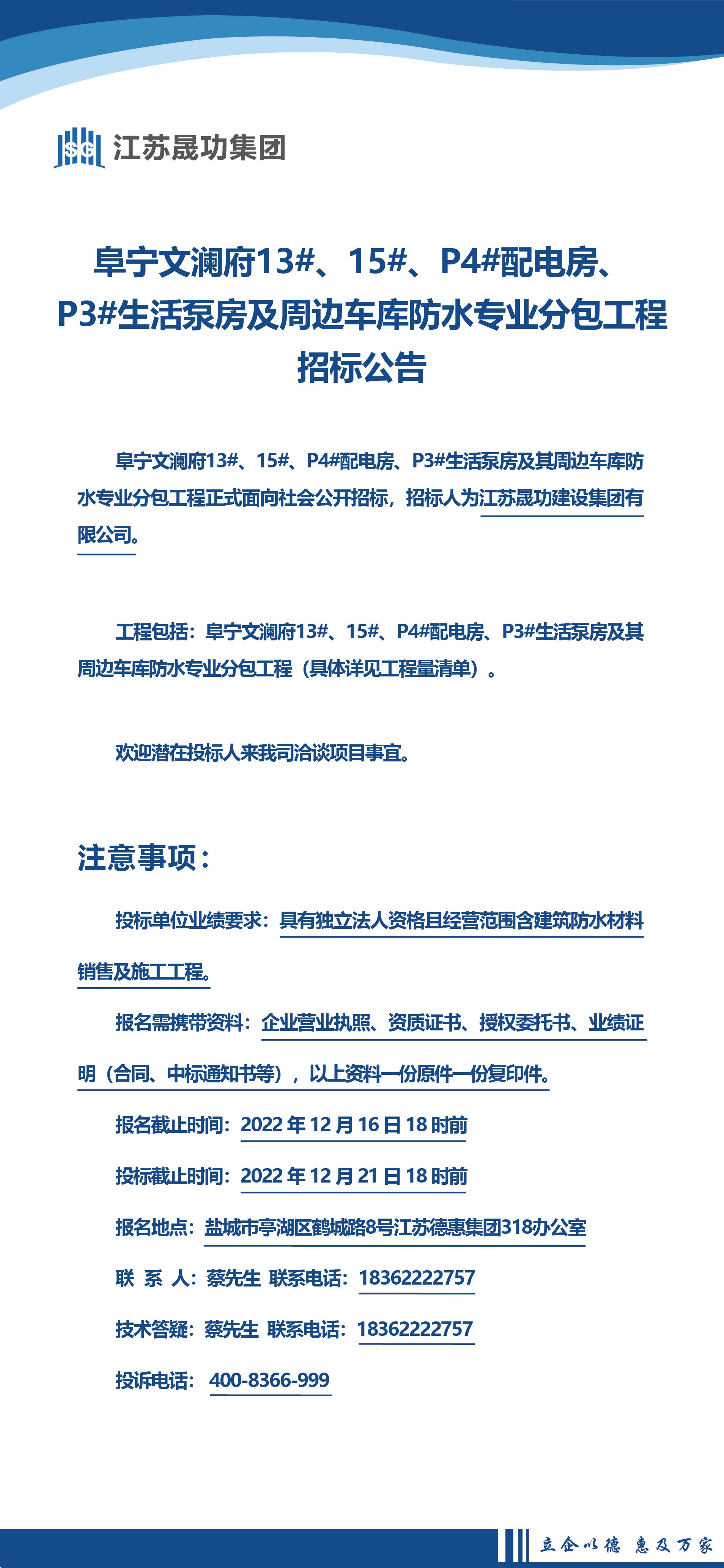 阜寧縣文瀾府二期13#、15#、P4#開閉所配電房、P3#生活泵房及其周邊車庫(kù)防水專業(yè)分包工程