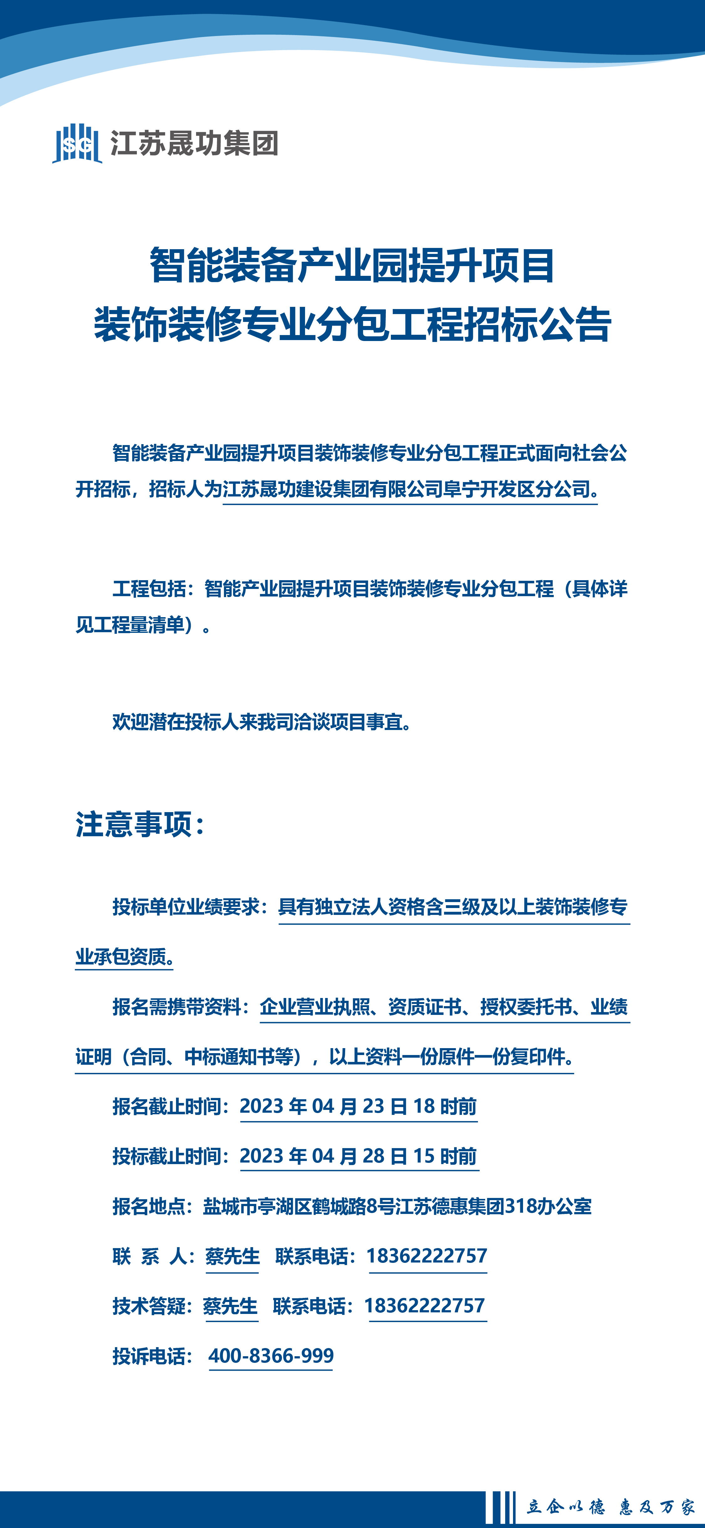 智能裝備產(chǎn)業(yè)園提升項(xiàng)目裝飾裝修專業(yè)分包工程