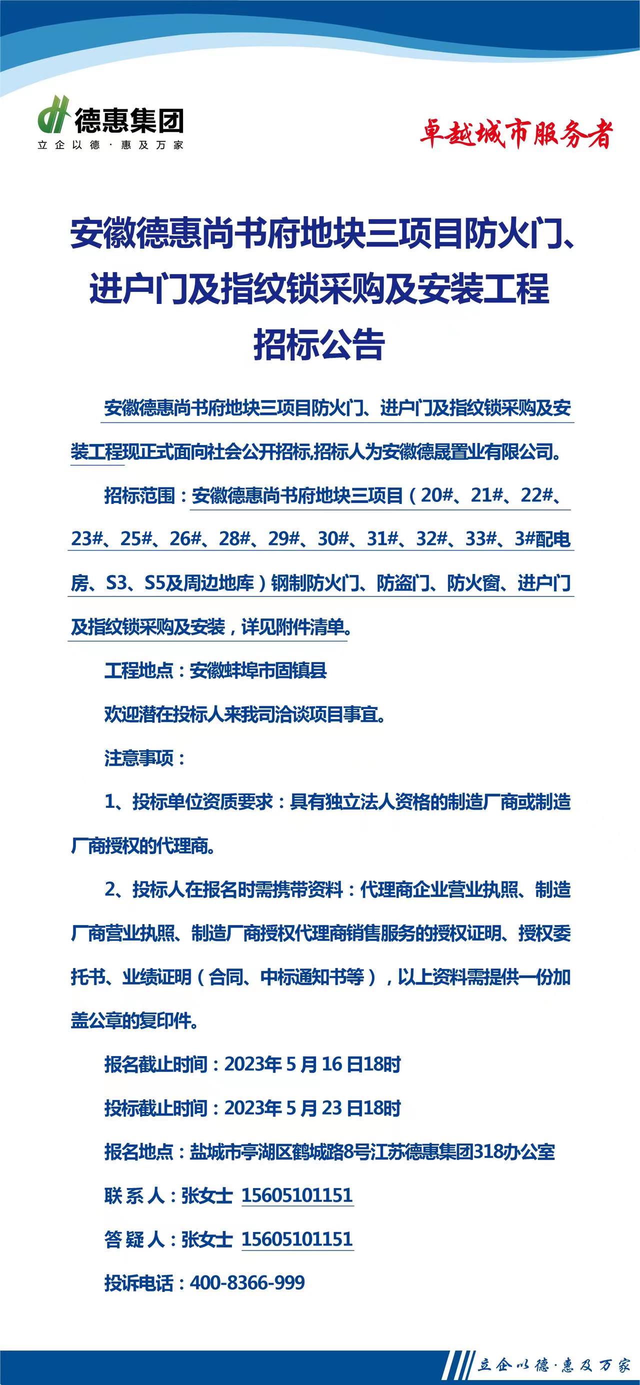 安徽德惠尚書府地塊三項(xiàng)目防火門、進(jìn)戶門專業(yè)分包工程