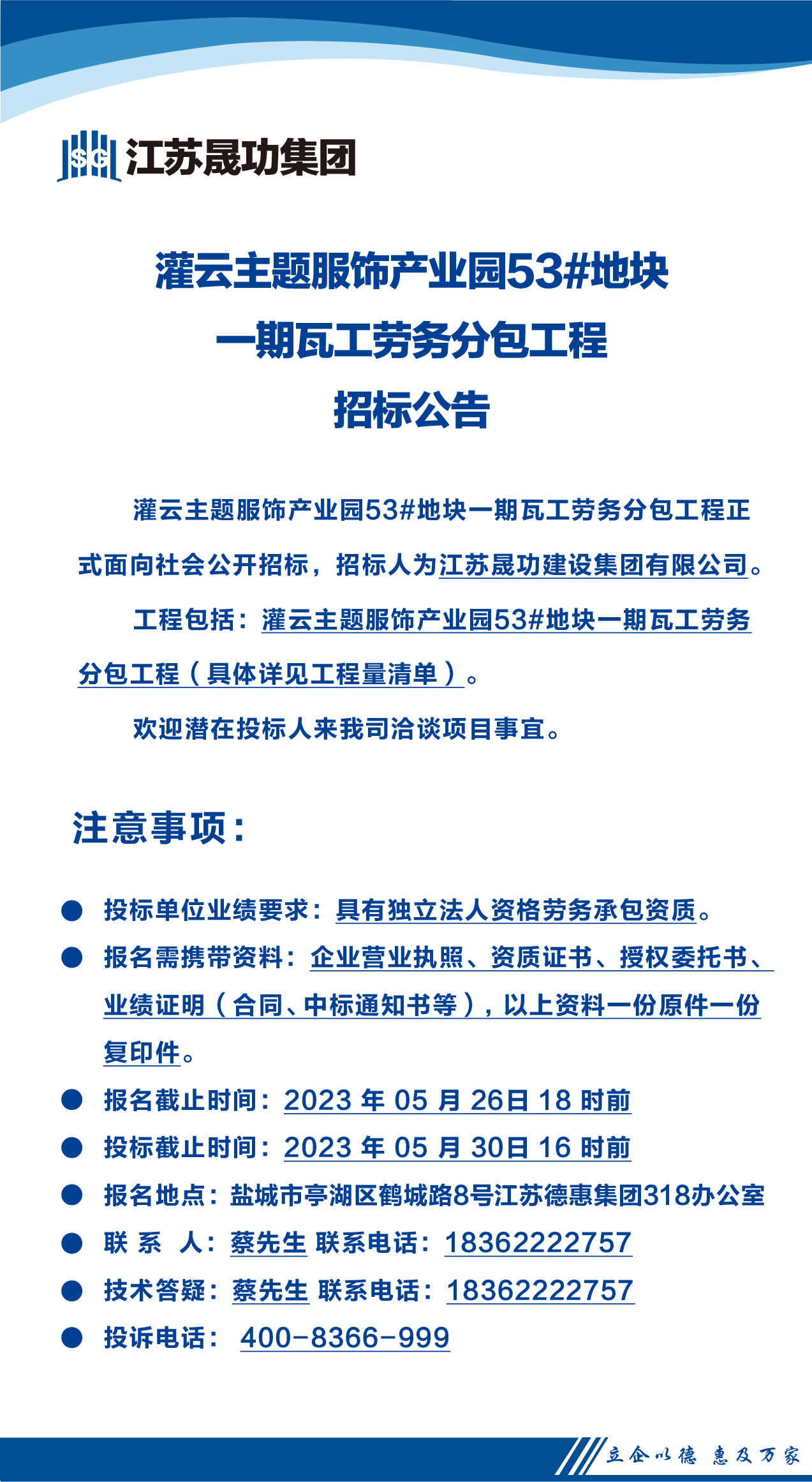 灌云主題服飾產(chǎn)業(yè)園53#地塊一期瓦工勞務(wù)分包工程