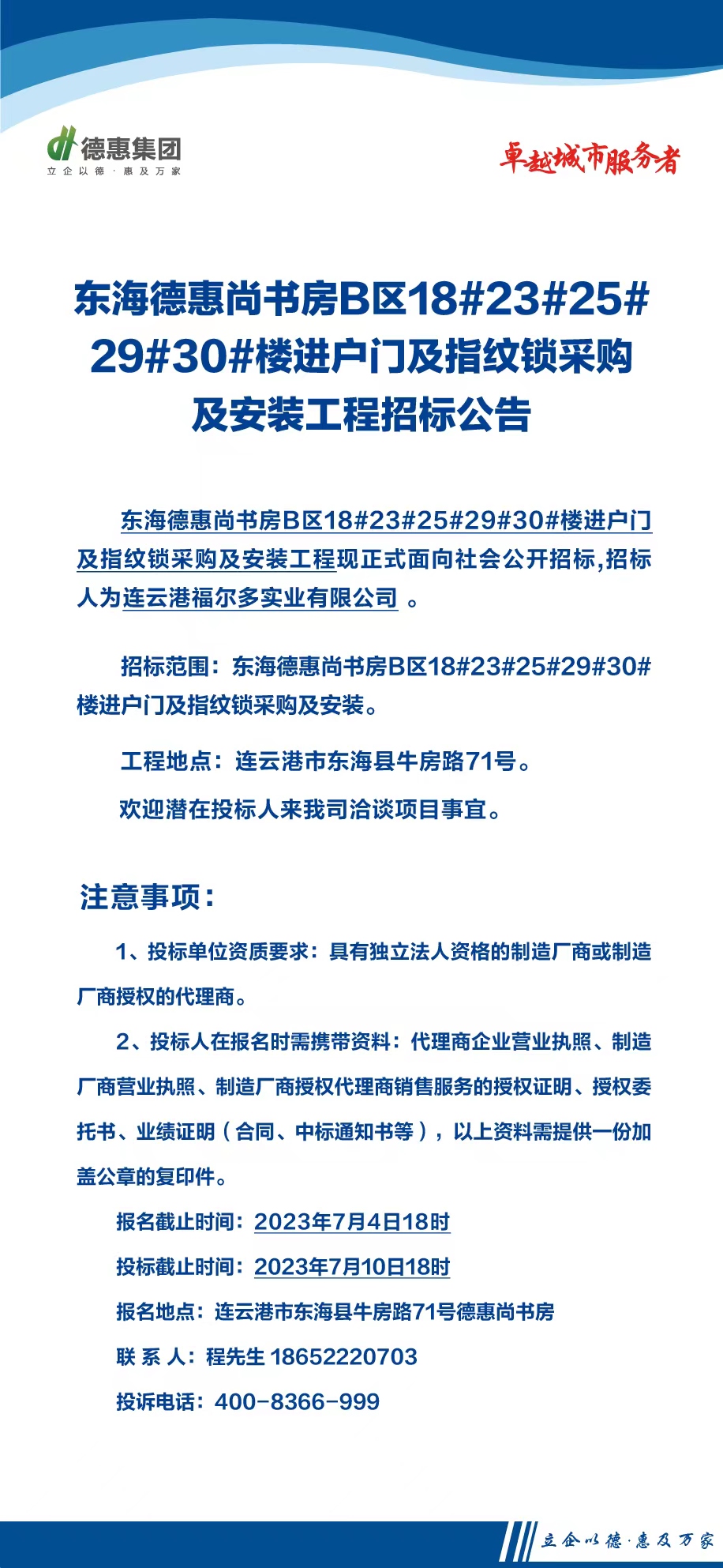 東海德惠尚書房B區(qū)18#23#25#29#30#樓進(jìn)戶門及指紋鎖采購及安裝工程