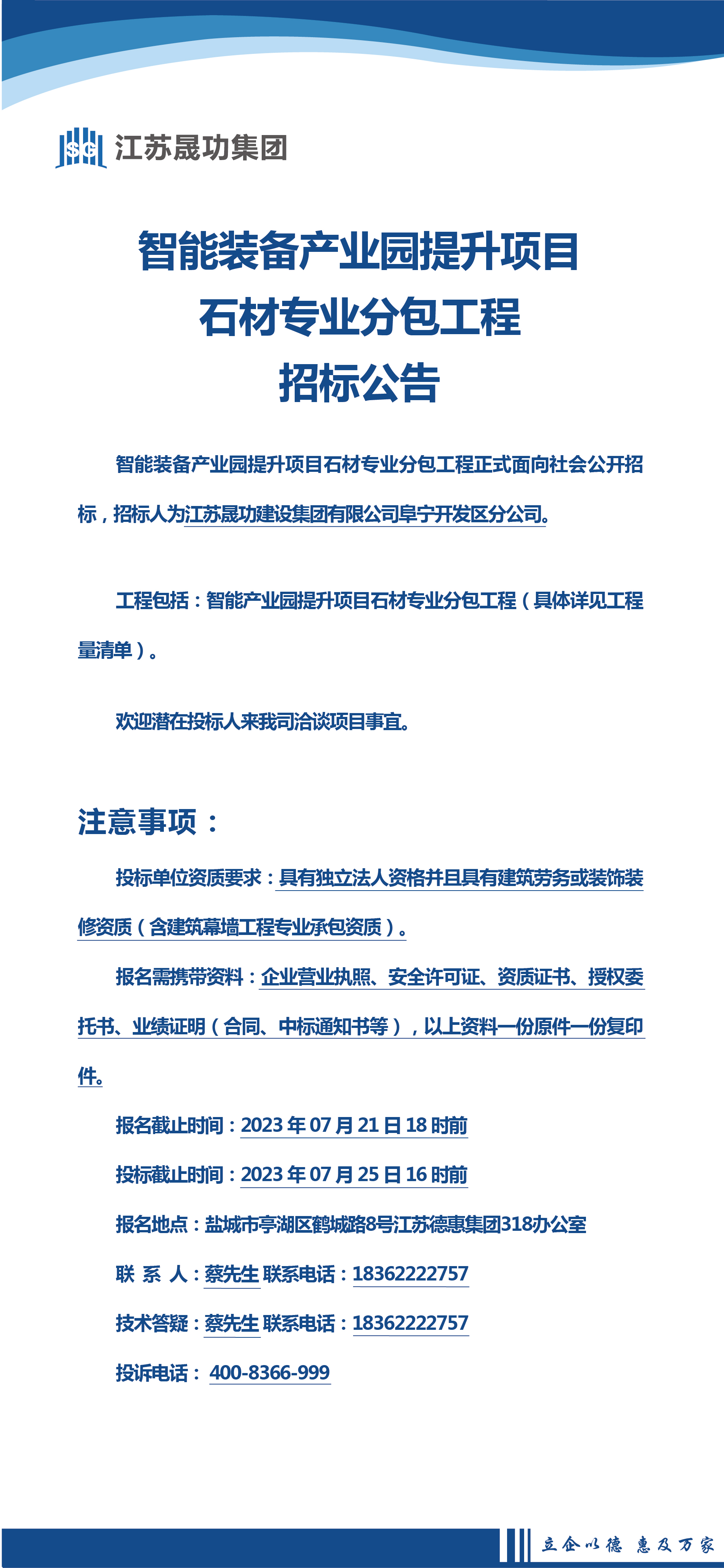 智能裝備產(chǎn)業(yè)園提升項目石材專業(yè)分包工程