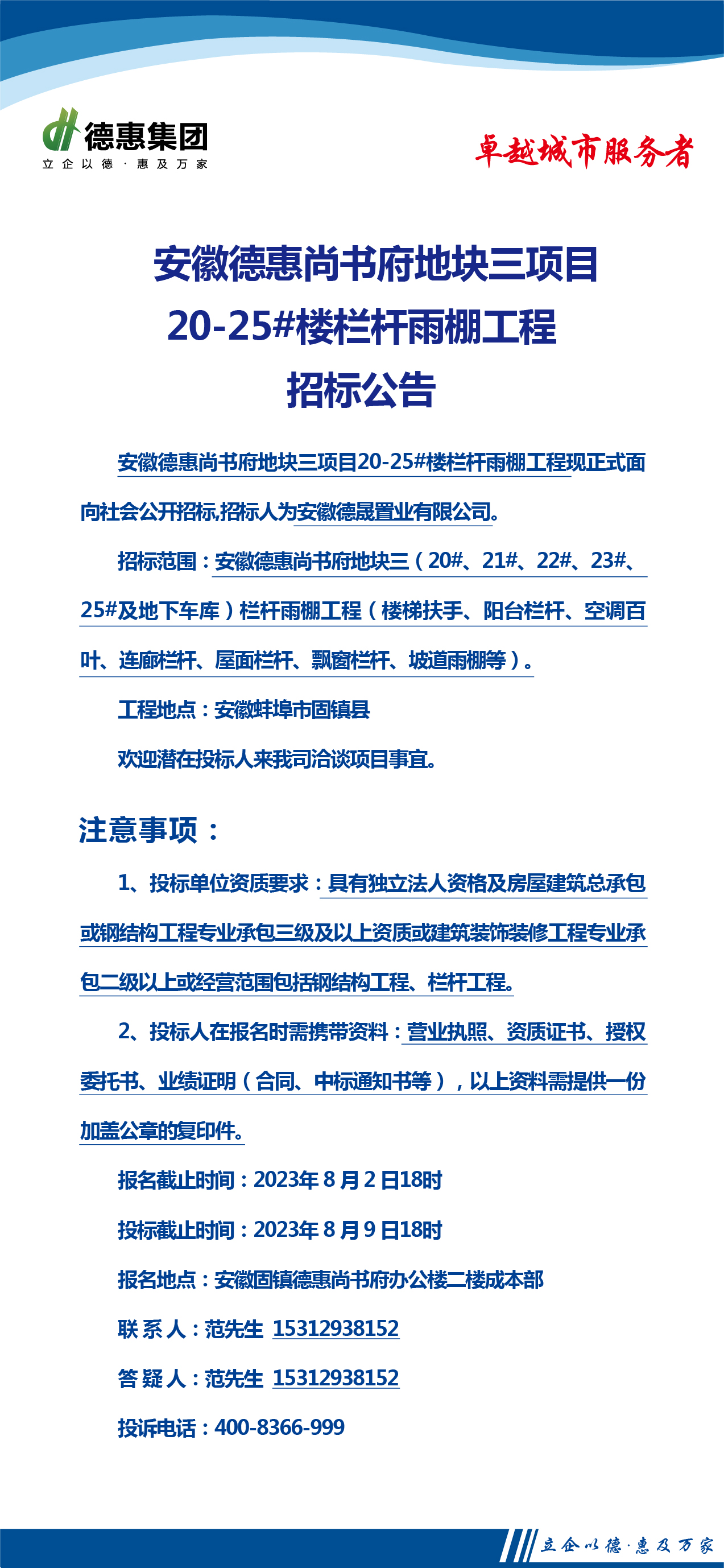 安徽固鎮(zhèn)德惠·尚書府地塊三(20-25#樓區(qū)域)欄桿雨棚工程