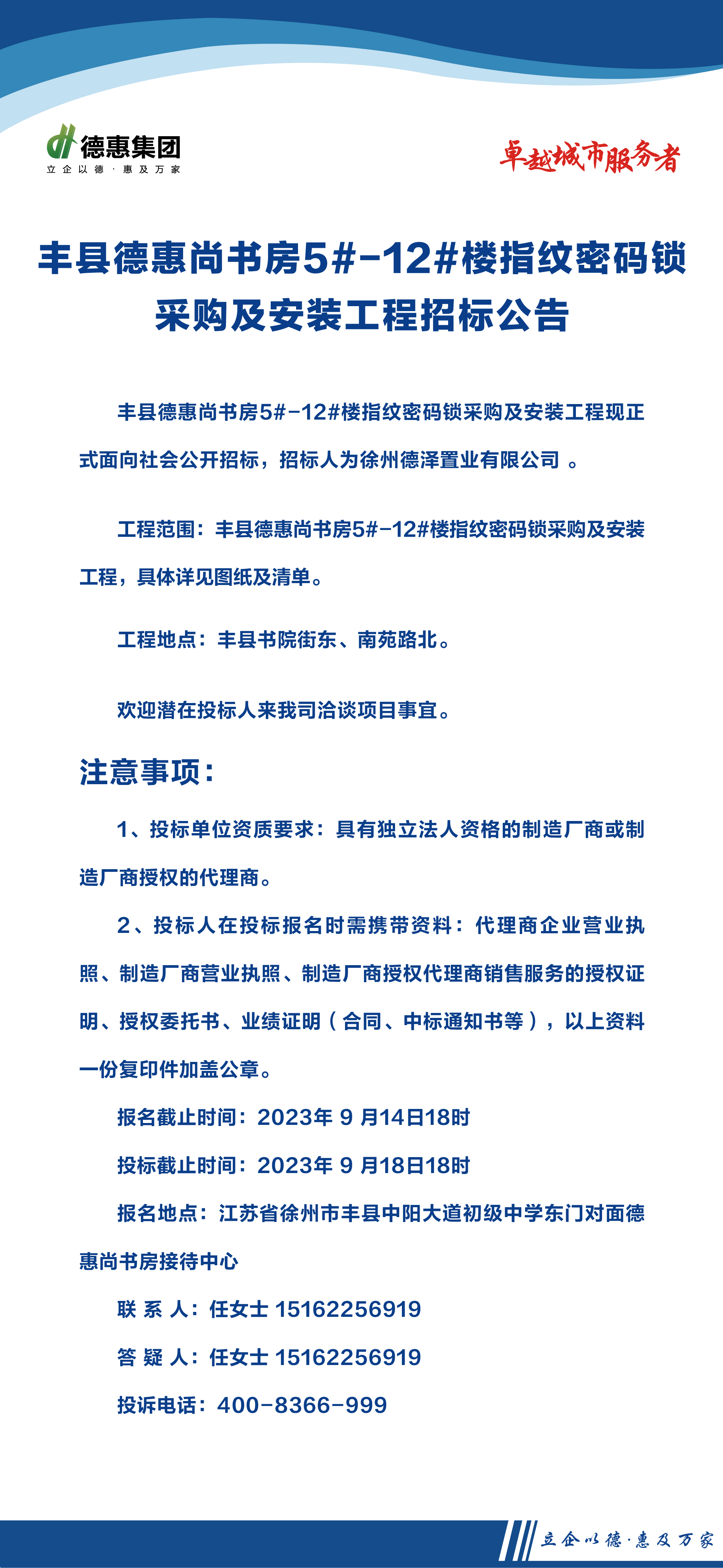 豐縣德惠尚書房5#-12#樓指紋密碼鎖采購及安裝工程