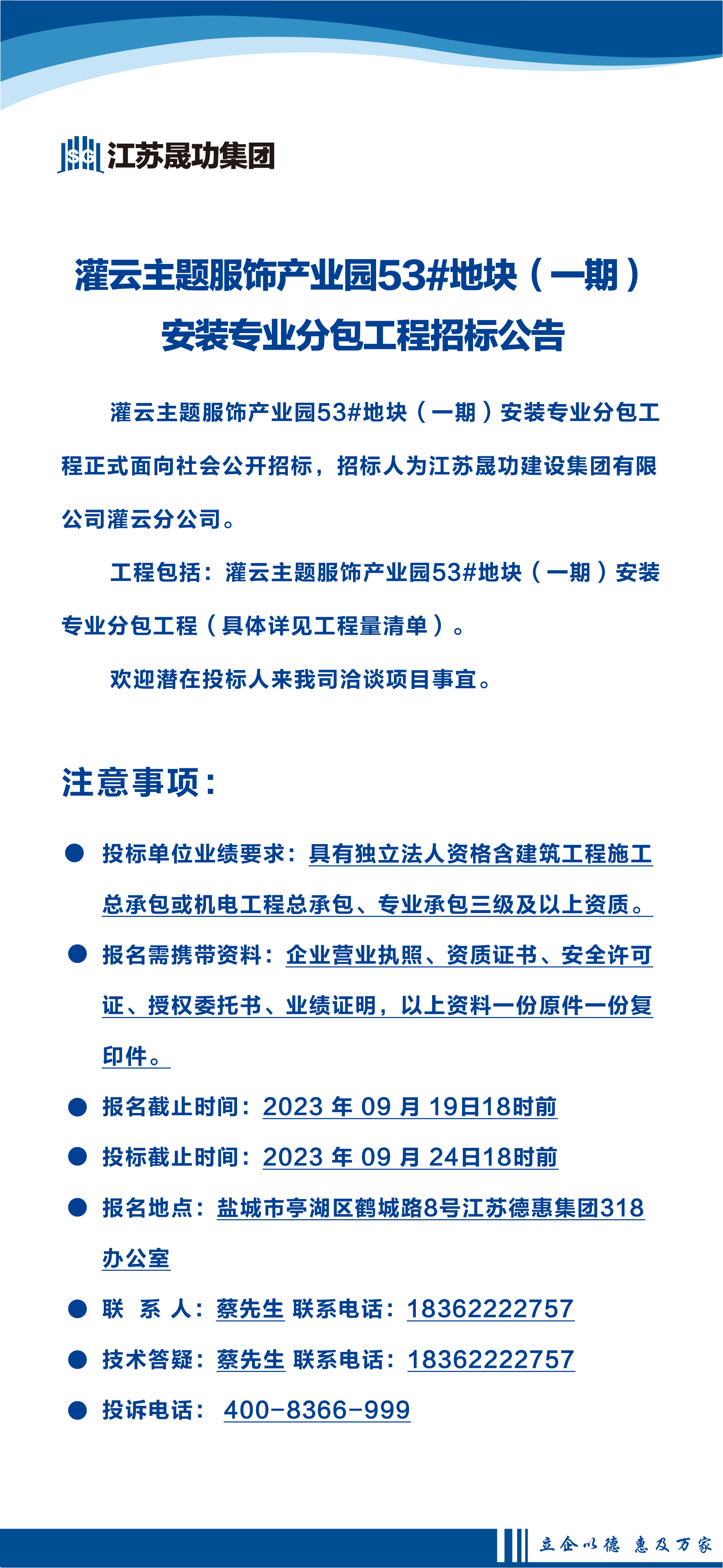 灌云主題服飾產(chǎn)業(yè)園53#地塊一期一標(biāo)段安裝專業(yè)分包工程