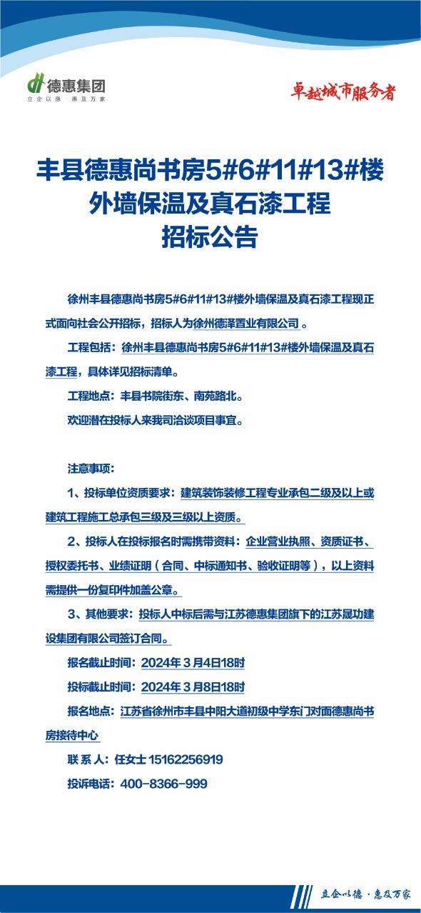 豐縣德惠尚書房5#6#11#13#樓外墻保溫及真石漆工程招標(biāo)公告