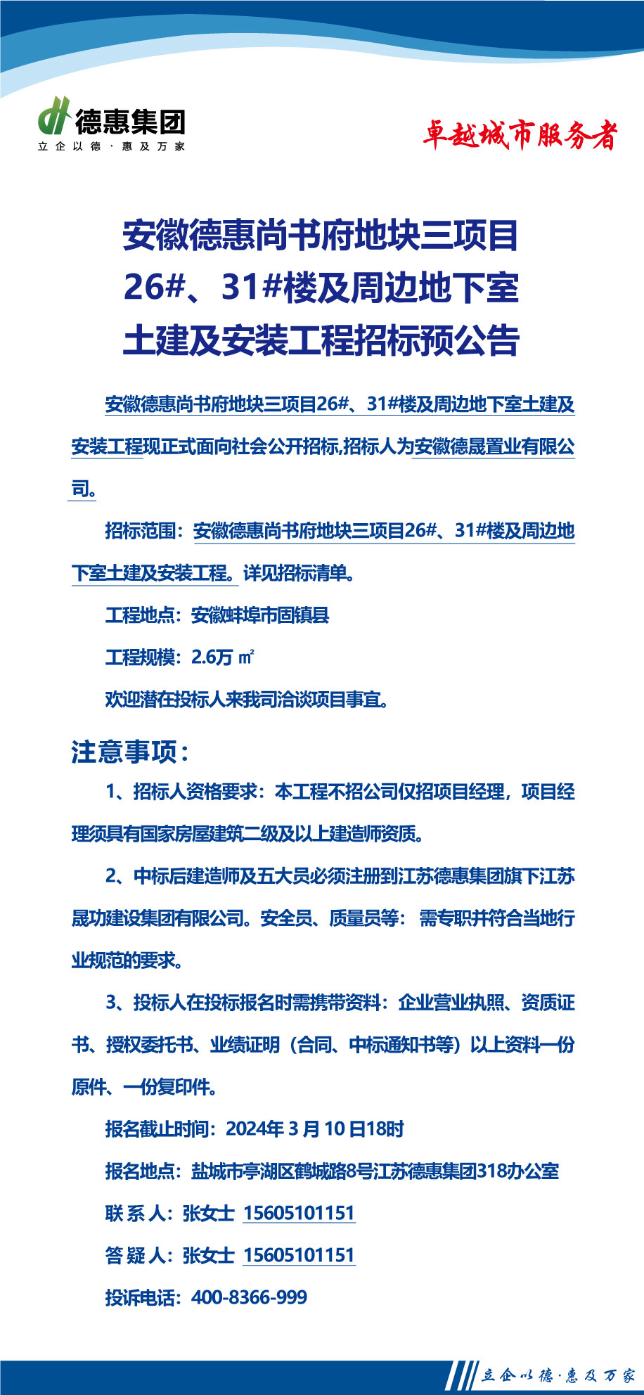 安徽固鎮(zhèn)德惠尚書府地塊三項(xiàng)目26#、31樓及周邊地庫(kù)總承包工程