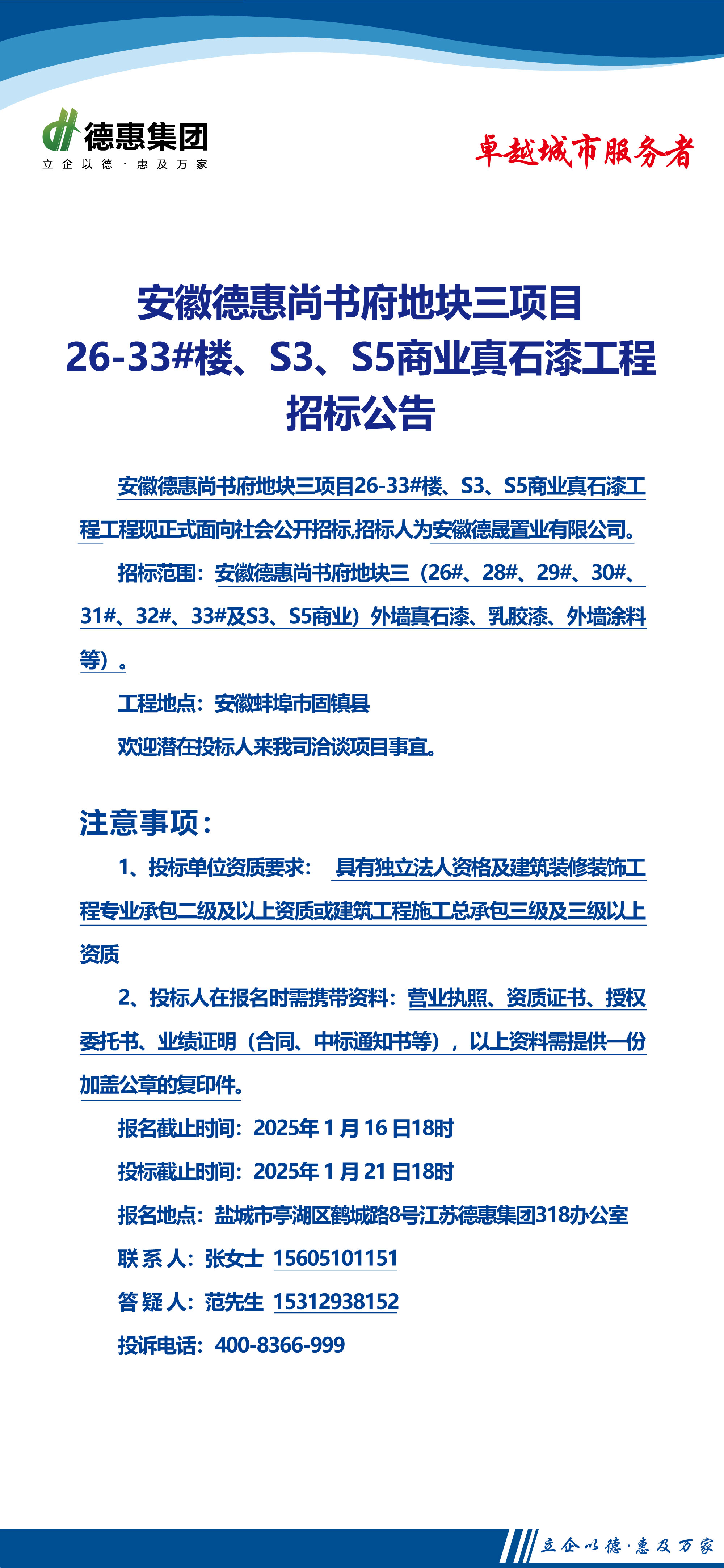 安徽德惠尚書府地塊三項目26-33#樓、S3、S5商業(yè)外墻真石漆工程