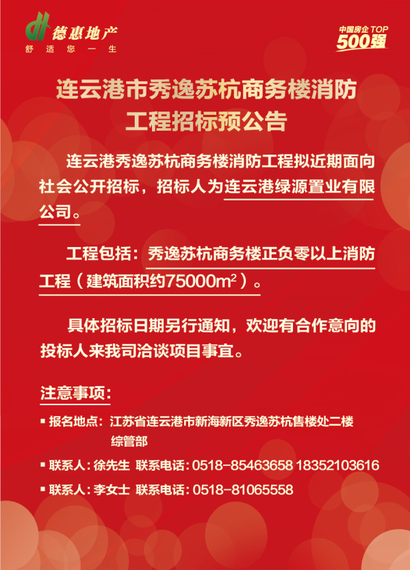 連云港 德惠·秀逸蘇杭商務(wù)樓消防工程招標(biāo)公告