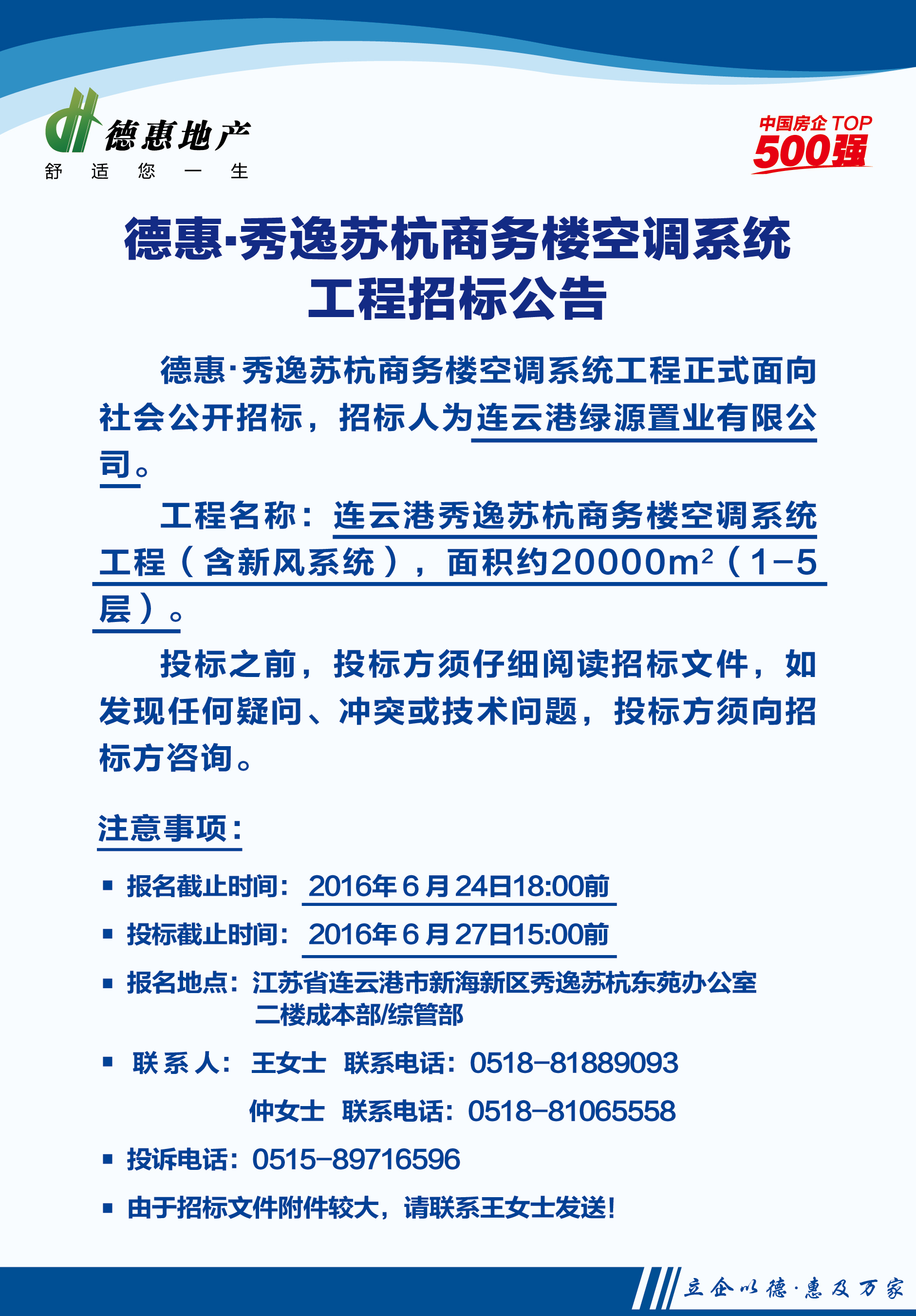 連云港德惠·秀逸蘇杭商務(wù)樓空調(diào)系統(tǒng)工程招標(biāo)公告