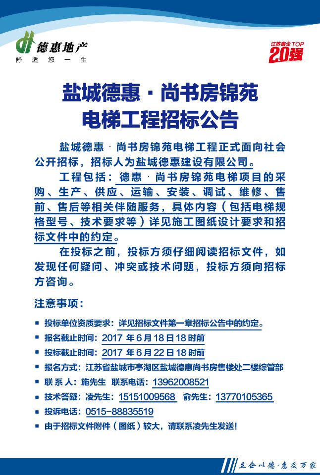 鹽城德惠•尚書(shū)房錦苑電梯工程招標(biāo)公告