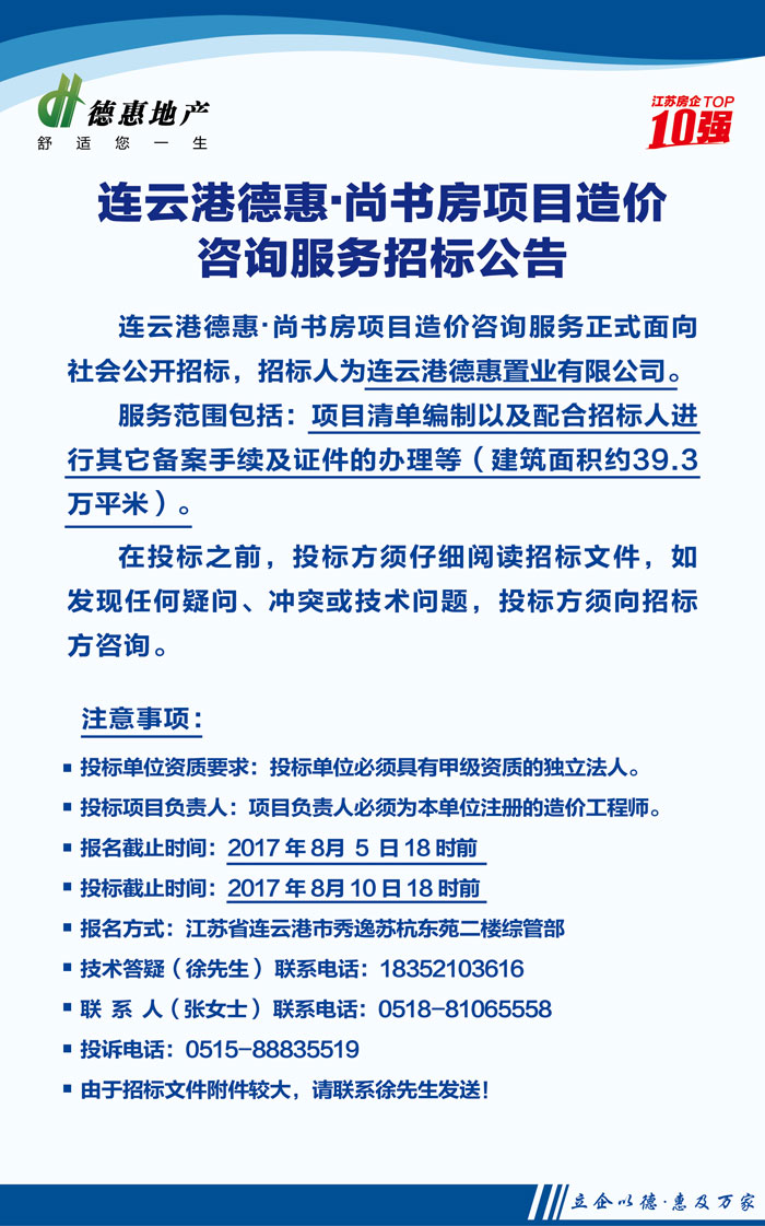 連云港德惠·尚書(shū)房項(xiàng)目造價(jià)咨詢(xún)服務(wù)招標(biāo)公告