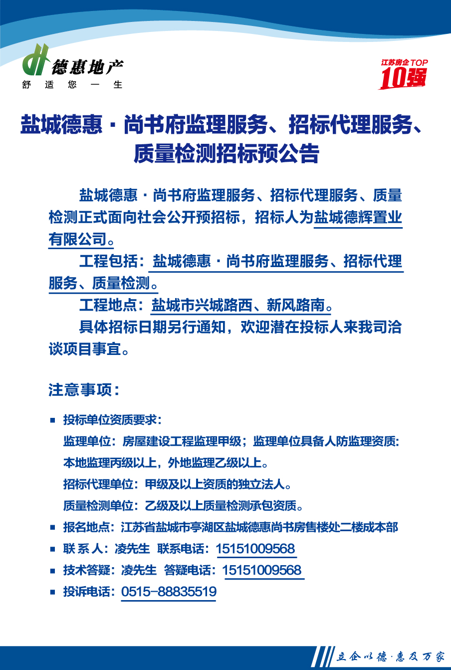 鹽城德惠·尚書府監(jiān)理服務(wù)、招標(biāo)代理服務(wù)、質(zhì)量檢測招標(biāo)預(yù)公告