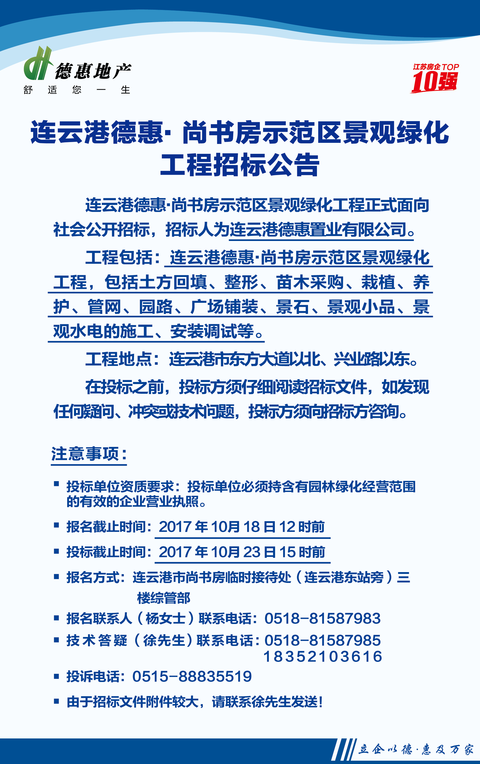 連云港德惠·尚書房示范區(qū)景觀綠化工程招標公告