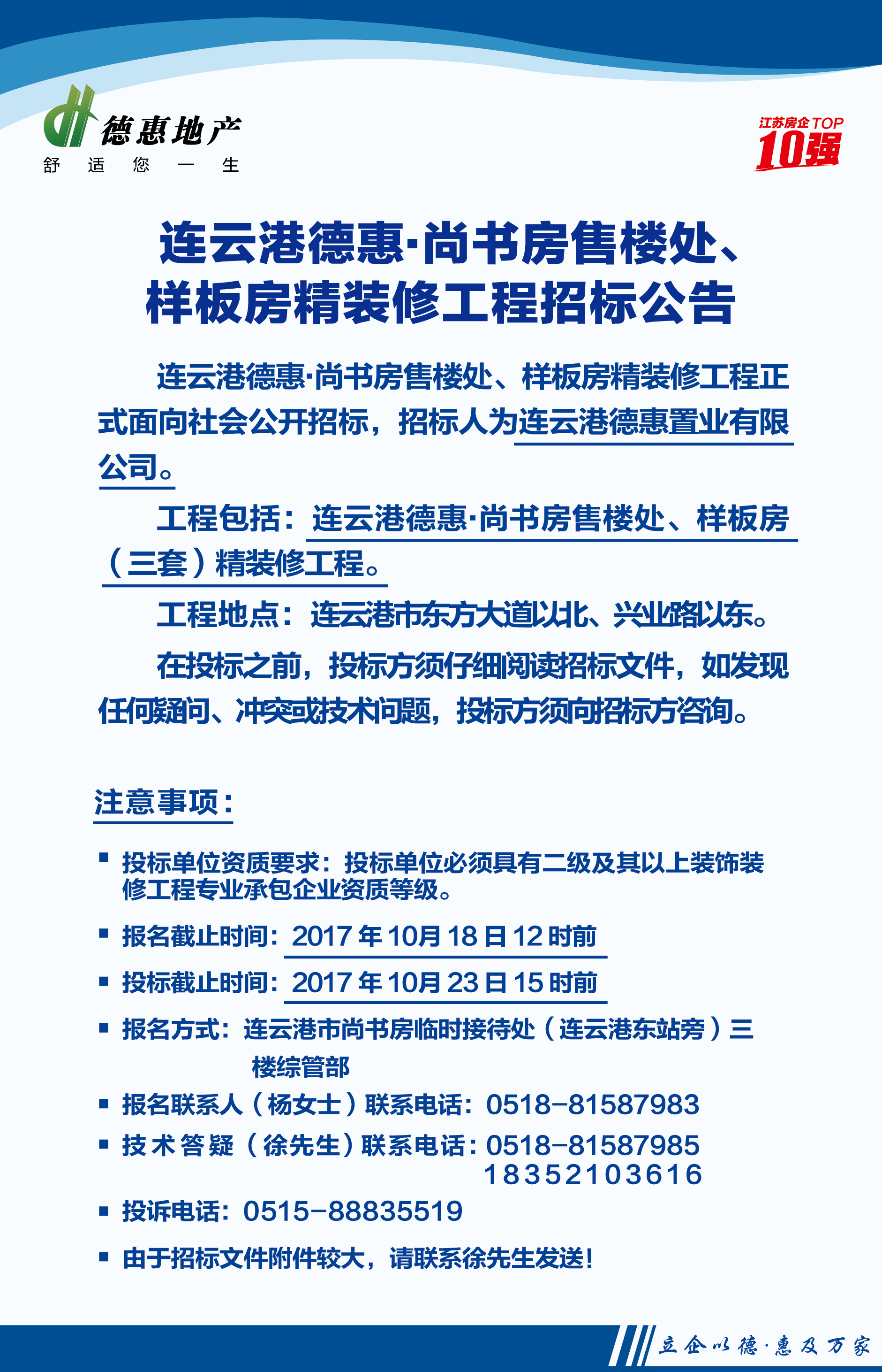 連云港德惠·尚書房售樓處、樣板房精裝修工程招標(biāo)公告