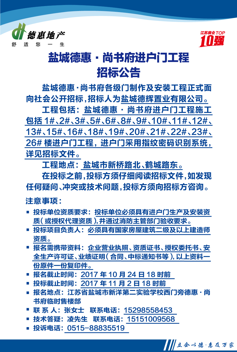 鹽城德惠·尚書(shū)府門窗工程招標(biāo)公告