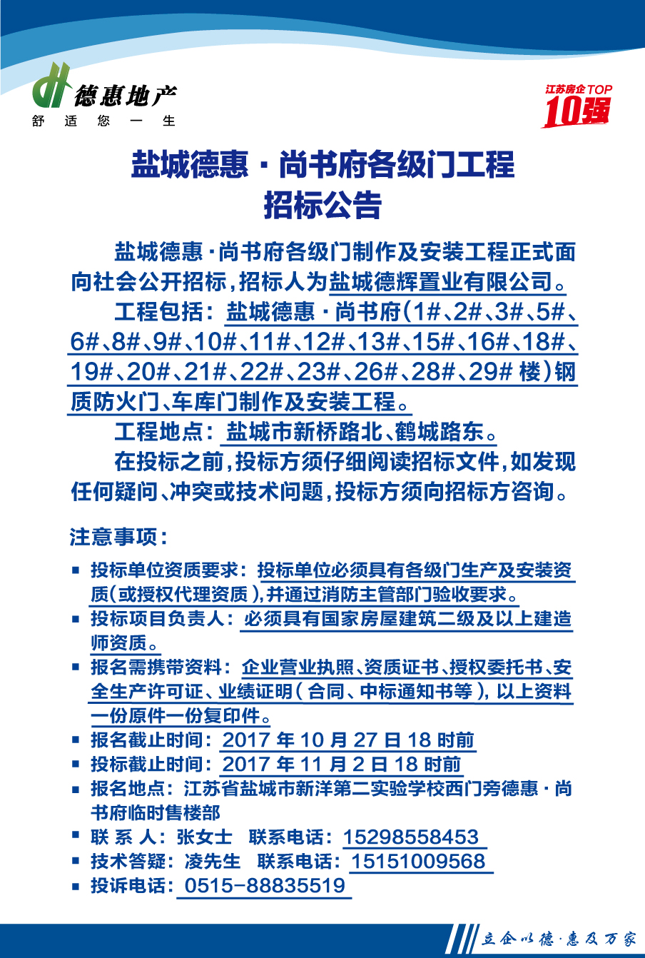 鹽城德惠·尚書府各級門工程招標(biāo)公告