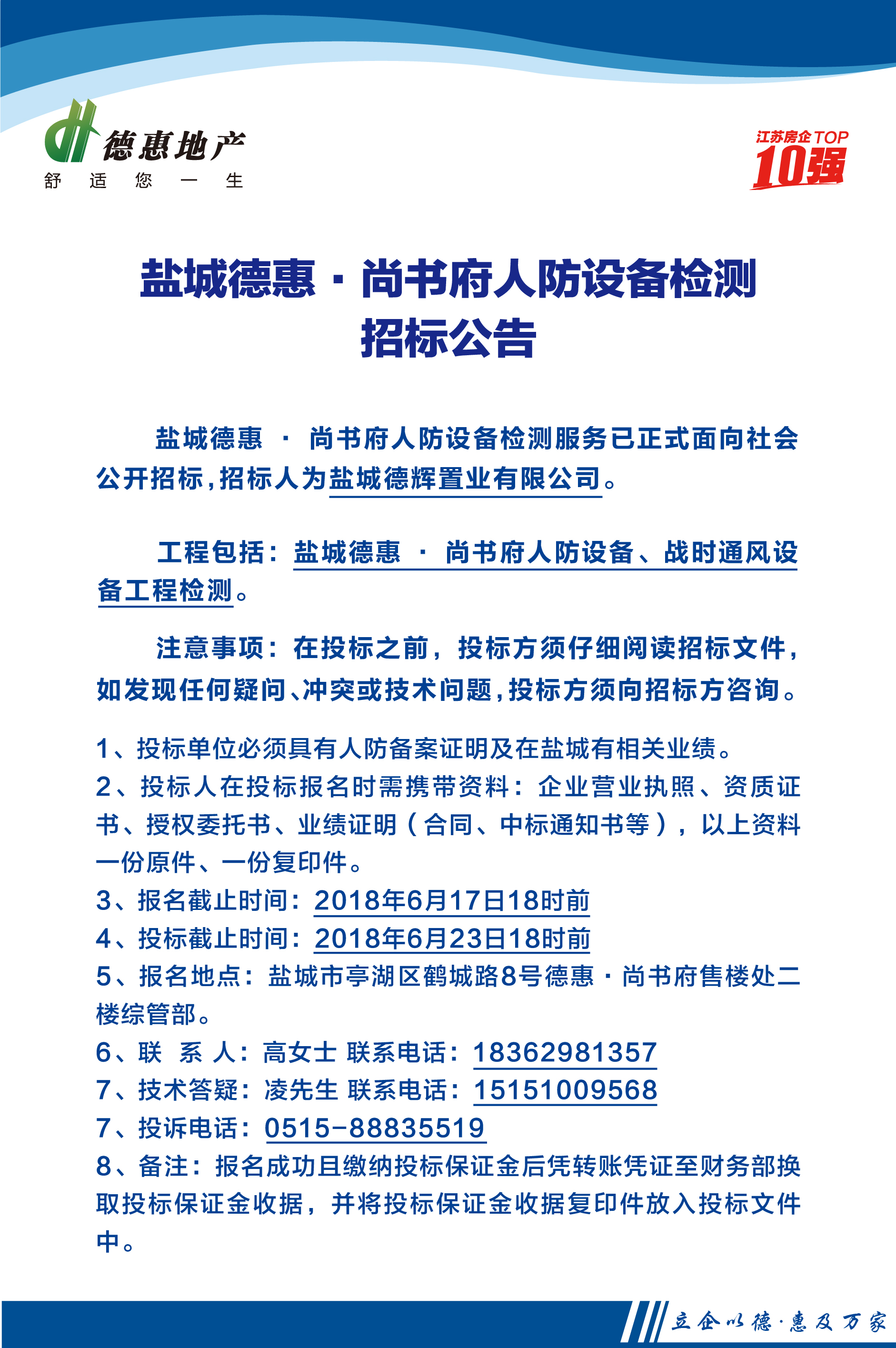 鹽城德惠·尚書府人防設(shè)備檢測招標(biāo)公告