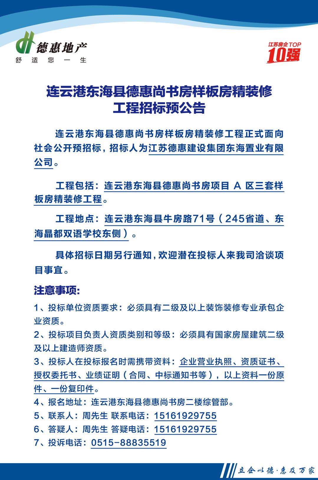 連云港東海縣德惠尚書房樣板房精裝修工程招標預(yù)公告
