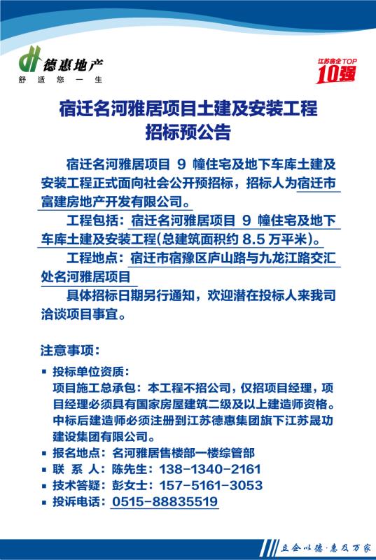 宿遷名河雅居項目土建及安裝工程招標預公告