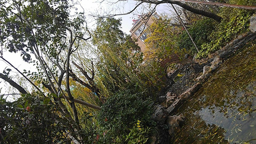 走著走著 隨手拂過碎如星點的紅葉 原來早過了桂花芬芳的季節(jié) 倚墻的竹子映出數(shù)不清的丹青色 大概是王羲之和鄭板橋穿越時空的揮毫潑墨 走著走著 無意間一瞥的碩大的芭蕉葉 瘦弱的櫻花樹正蘊籍著盛放的力量 高大的槐樹嬌俏的女貞 或許是西方神話中的自然女神和精靈的法術(shù)凝結(jié)