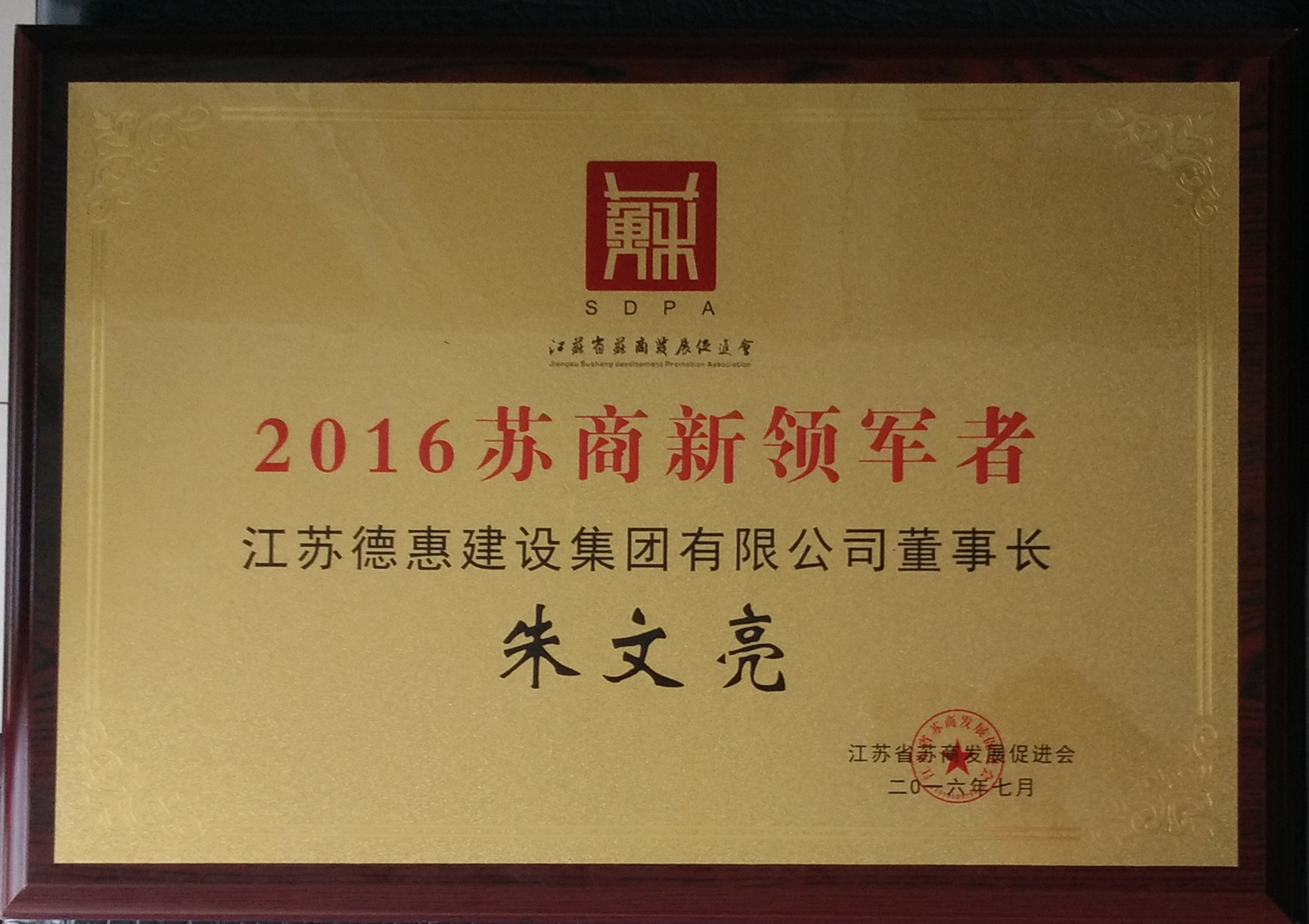 2016年7月9日,朱文亮董事長榮獲“2016蘇商新領軍者”稱號! |