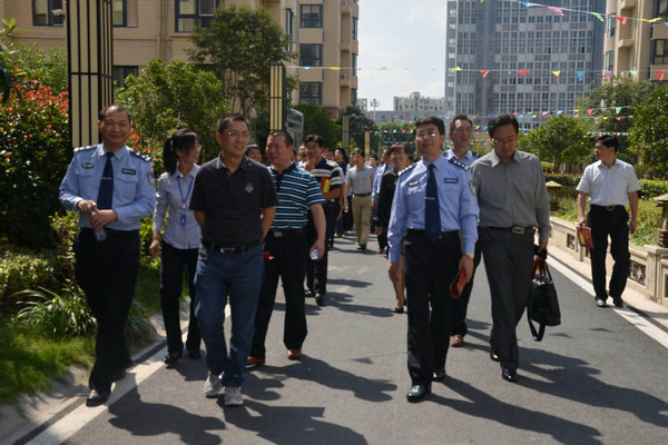 9月30日,省公安廳、鹽城市公安局及九個(gè)縣市區(qū)公安局主要領(lǐng)導(dǎo)蒞臨壹品仕家小區(qū)指導(dǎo)技防建設(shè)工作,我集團(tuán)監(jiān)事會(huì)主席、德惠物業(yè)公司總經(jīng)理葉為利,集團(tuán)副總經(jīng)理孫曉莉、德惠物業(yè)經(jīng)理朱效東等相關(guān)負(fù)責(zé)同志陪同視察。