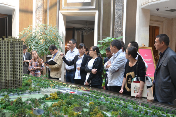 綠城·玉蘭廣場銷售經(jīng)理為考察團(tuán)講解樓盤營銷情況