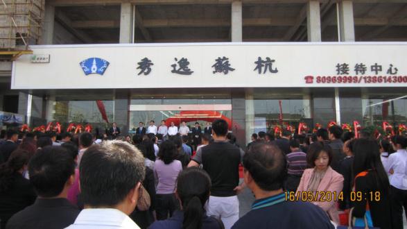 接待中心現(xiàn)場吸引了大批客戶,人頭攢動、熱鬧非凡。上午9點18分德惠集團黨支部書記沈凱明宣布德惠·秀逸蘇杭新接待中心正式開業(yè)。