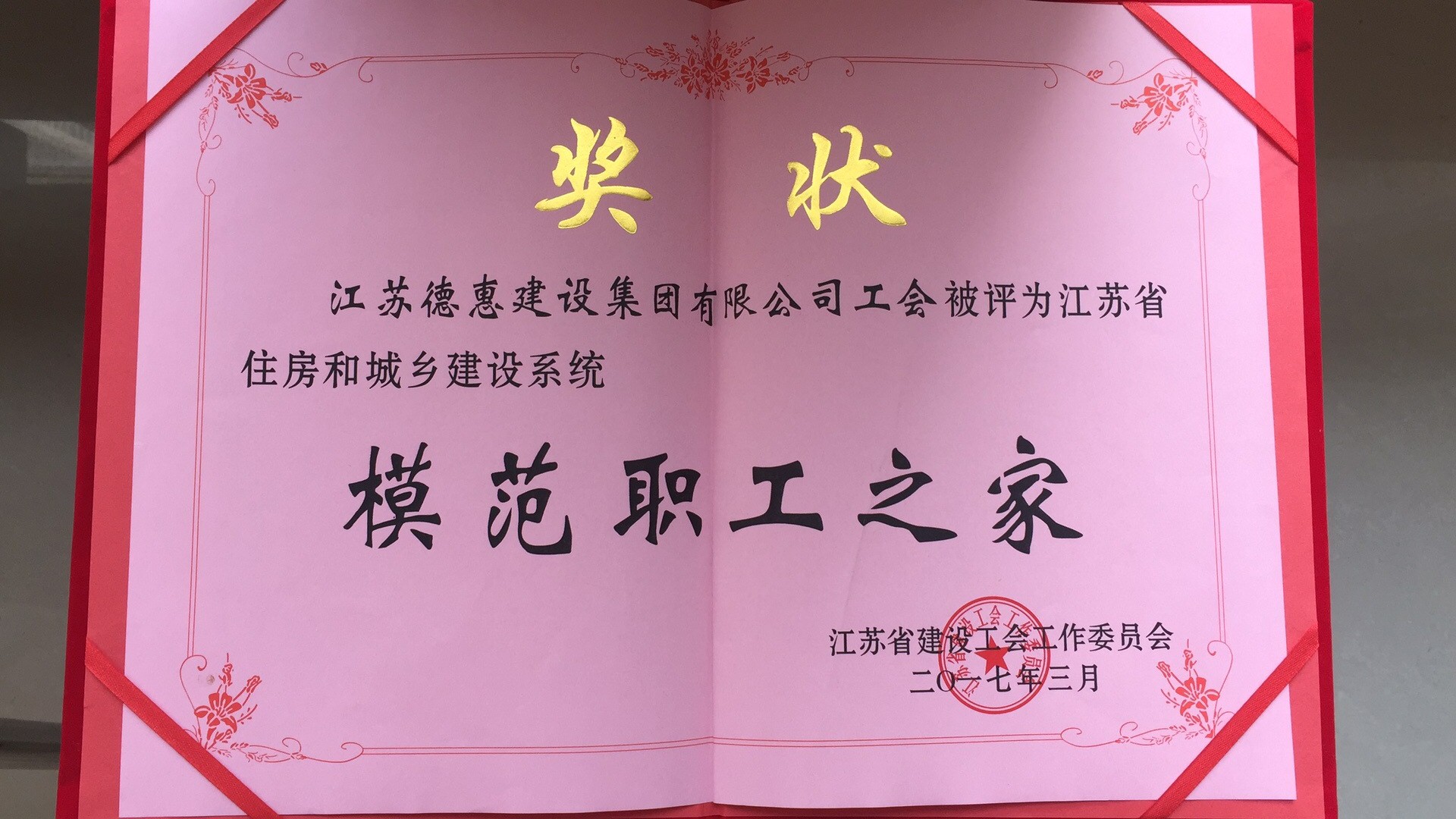 熱烈祝賀江蘇德惠建設(shè)集團有限公司工會被評為江蘇省住房和城鄉(xiāng)建設(shè)系統(tǒng)“模范職工之家”榮譽稱號?。?!