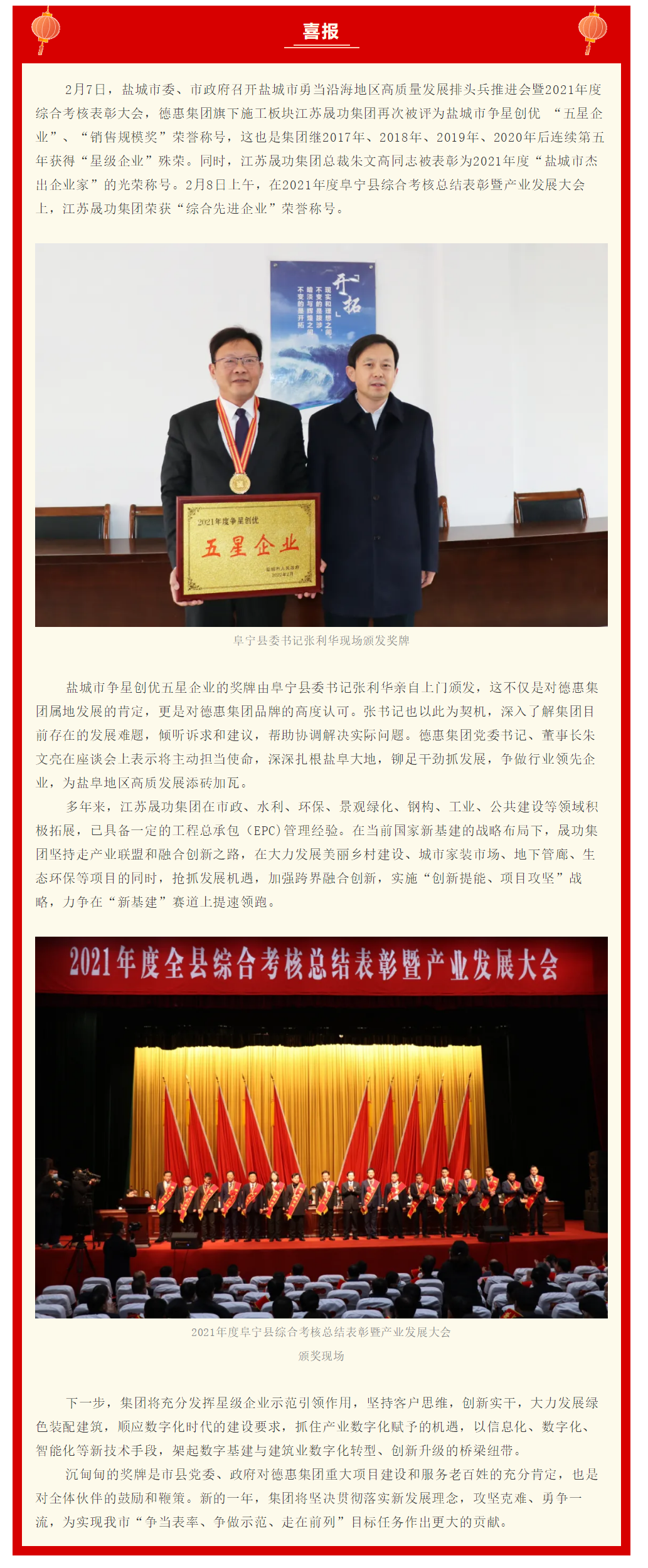 喜報(bào)頻傳!集團(tuán)蟬聯(lián)鹽城市爭星創(chuàng)優(yōu) “五星企業(yè)”、“銷售規(guī)模獎(jiǎng)”,阜寧縣“綜合先進(jìn)企業(yè)”榮譽(yù)稱號