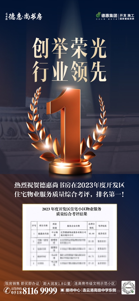 熱烈祝賀德惠尚書房在2023年度開發(fā)區(qū)住宅物業(yè)服務質量綜合考評,排名第一!